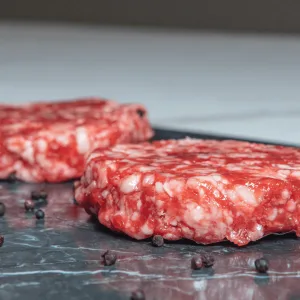 Elaborada con carne de vaca Frisona, auténtica carne de buey y Luismi Dry Aged Gallego.