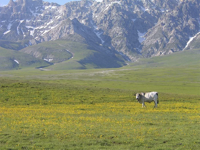 La montaña tiembla al paso de estas bellezas bovinas. Disfrutan de la vida salvaje y salvan las duras condiciones climáticas moviéndose sin prisa, conocedoras de su fuerza, una característica que requiere una maduración larga y controlada de más de cien días, que convierte su dureza muscular en un prodigioso sabor.